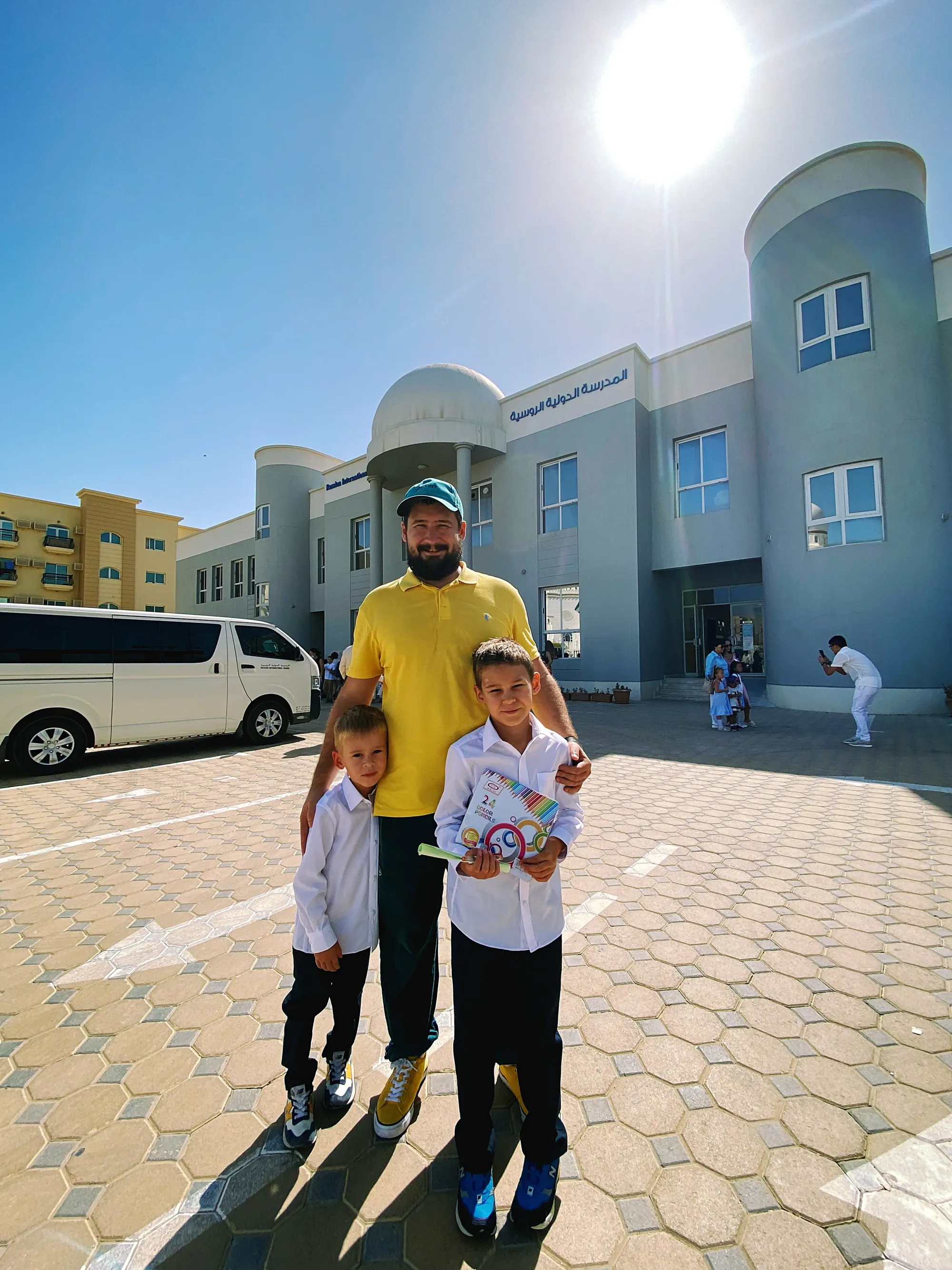 В эту школу мы попали потому что у нас совсем не было на руках никаких документов — Emirates IDs еще не успели выпустить, прием в школы закончился еще в июле, а вот русская школа взяла нас без взяких документов и просто мы приехали туда, прошли ассесмент и нас взяли.