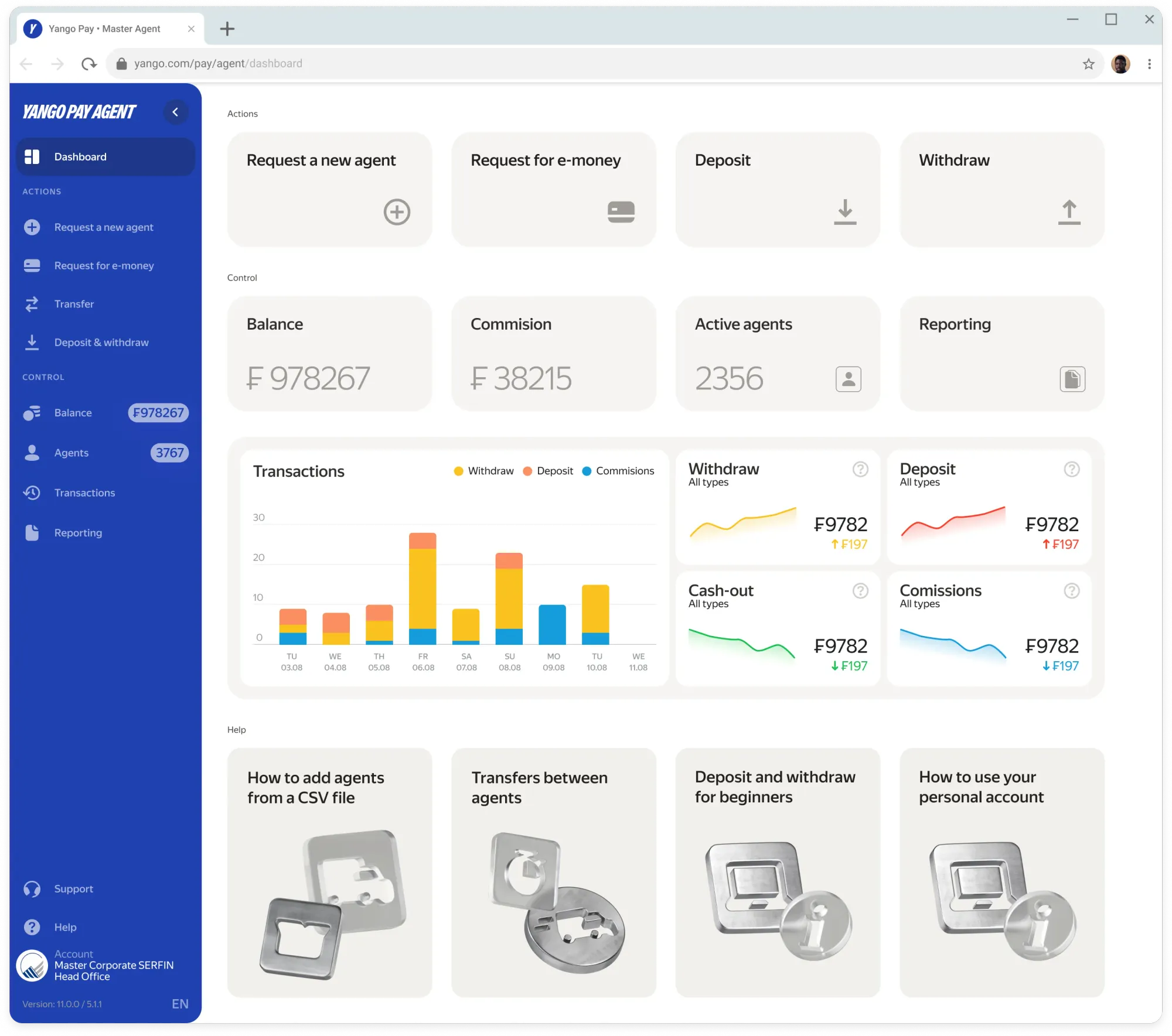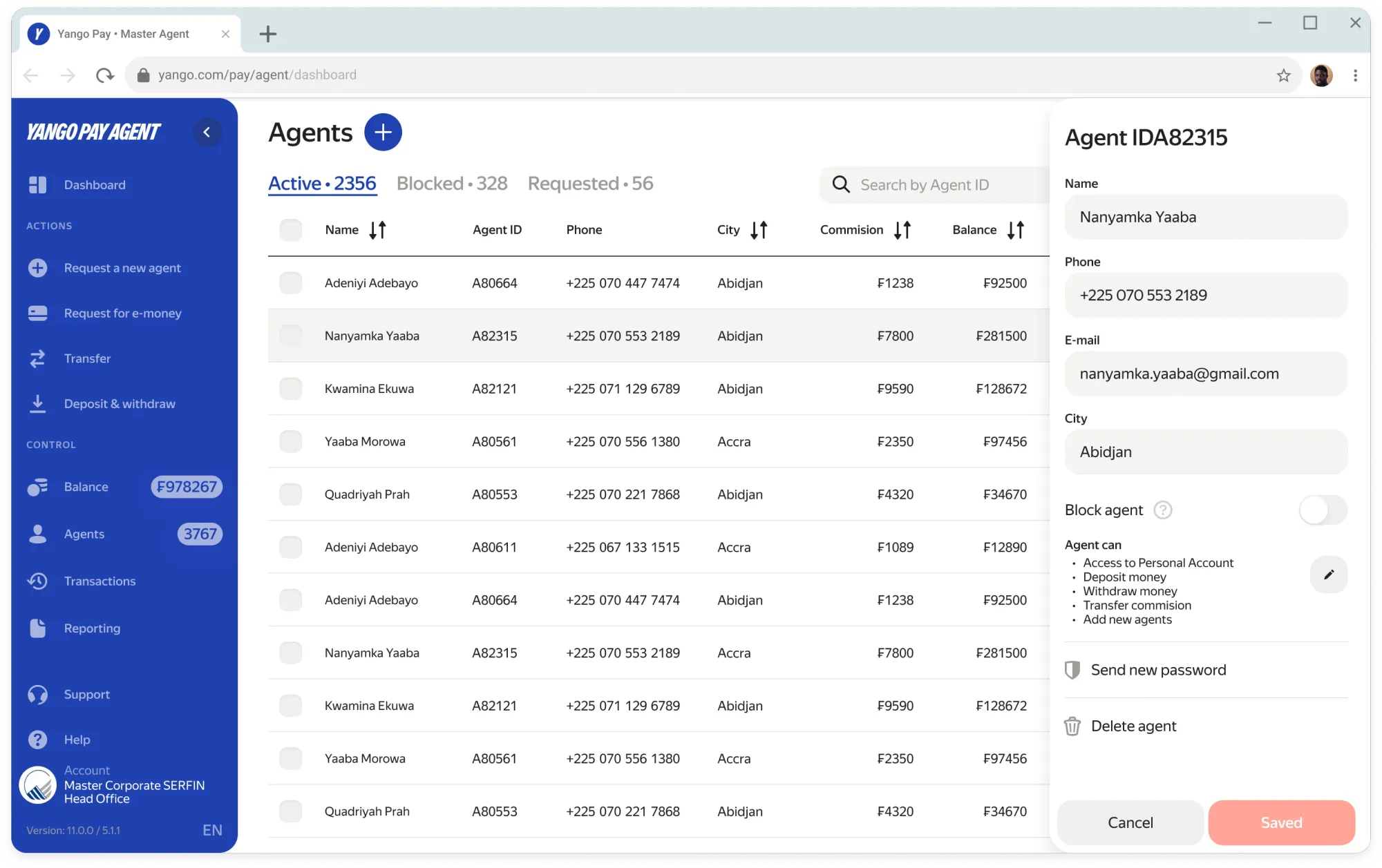 As part of the Yango Pay ecosystem, I designed a web-based admin interface that allowed managers to oversee and control networks of money exchange agents operating within the app.