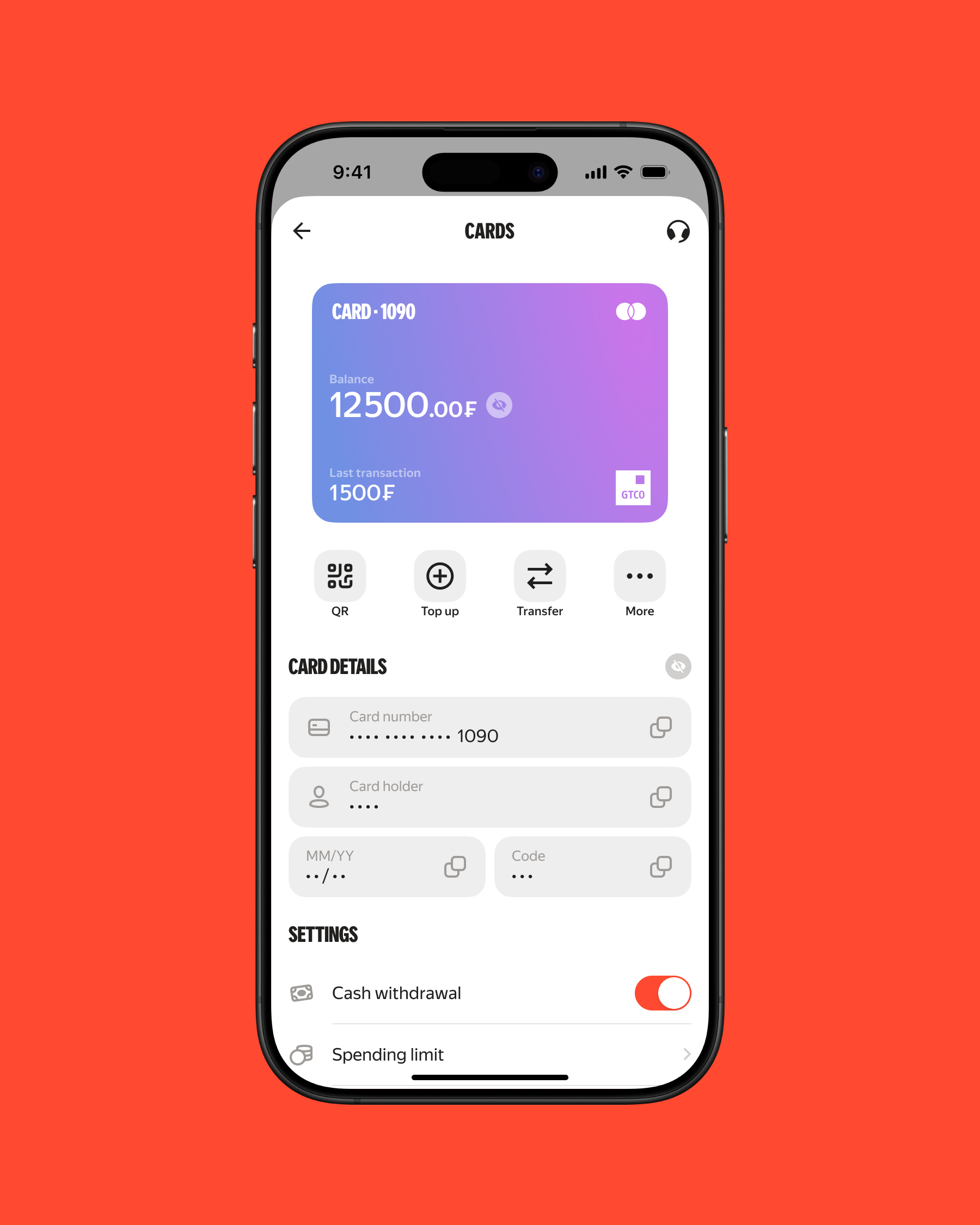 • Virtual Visa and MasterCard cards, fully integrated into the app, giving users access to global payment systems without needing a physical bank account.