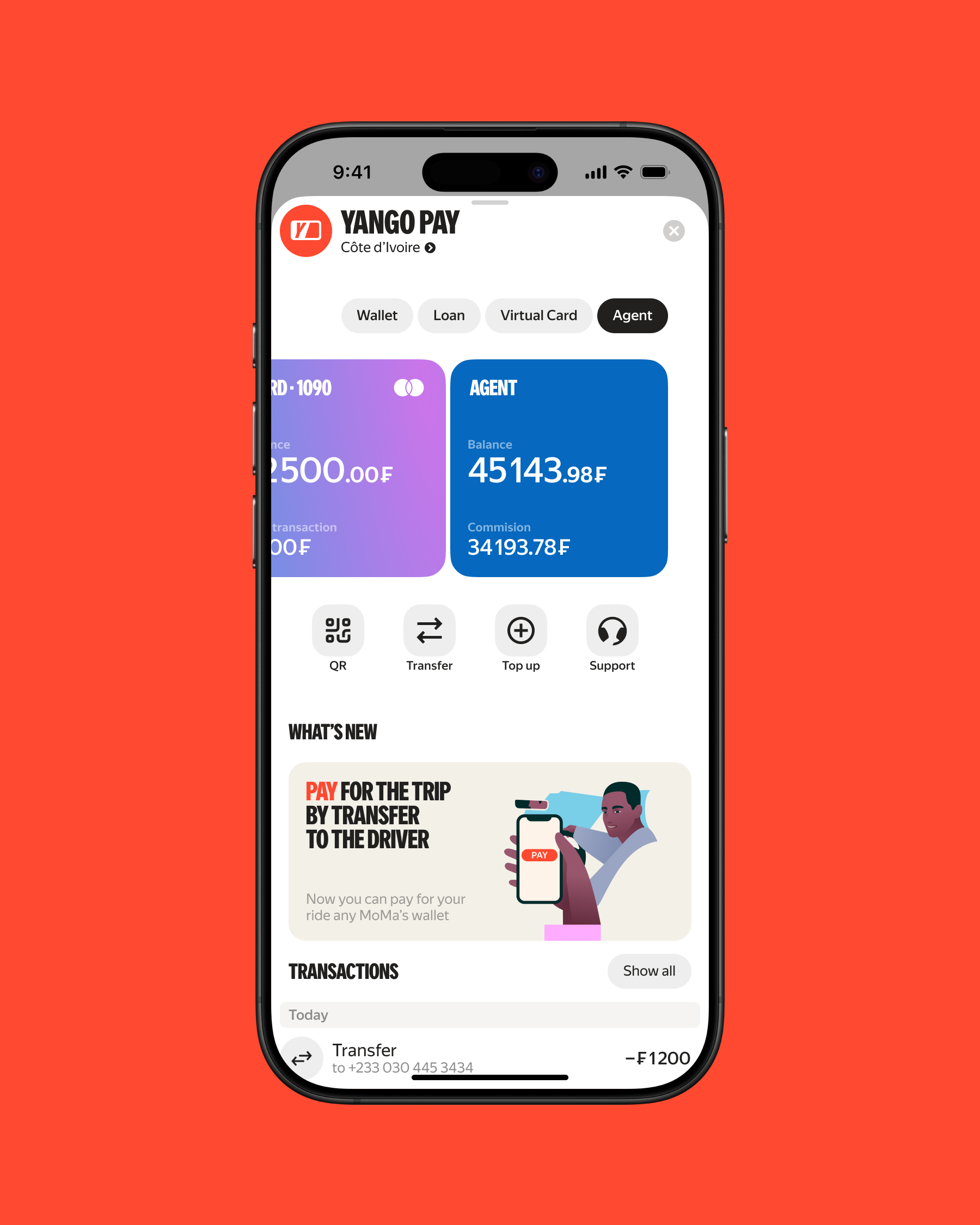 At Yango Pay, I led product design for a suite of fintech features built specifically for the African market — with a focus on Côte d’Ivoire and Ghana. Our goal was to create a mobile wallet experience that felt modern, human, and deeply localized.